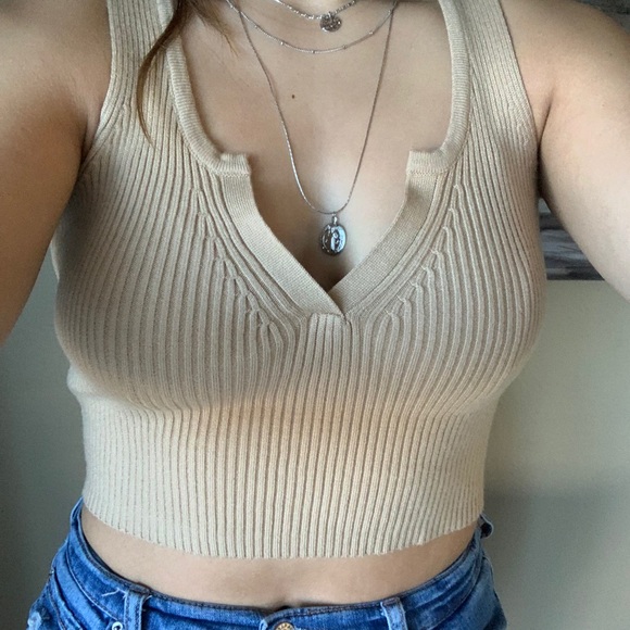 super cute tan top for summer or winter! thick knitted material, super comfy