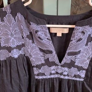 loft semi sheer flowy navy embroidered top