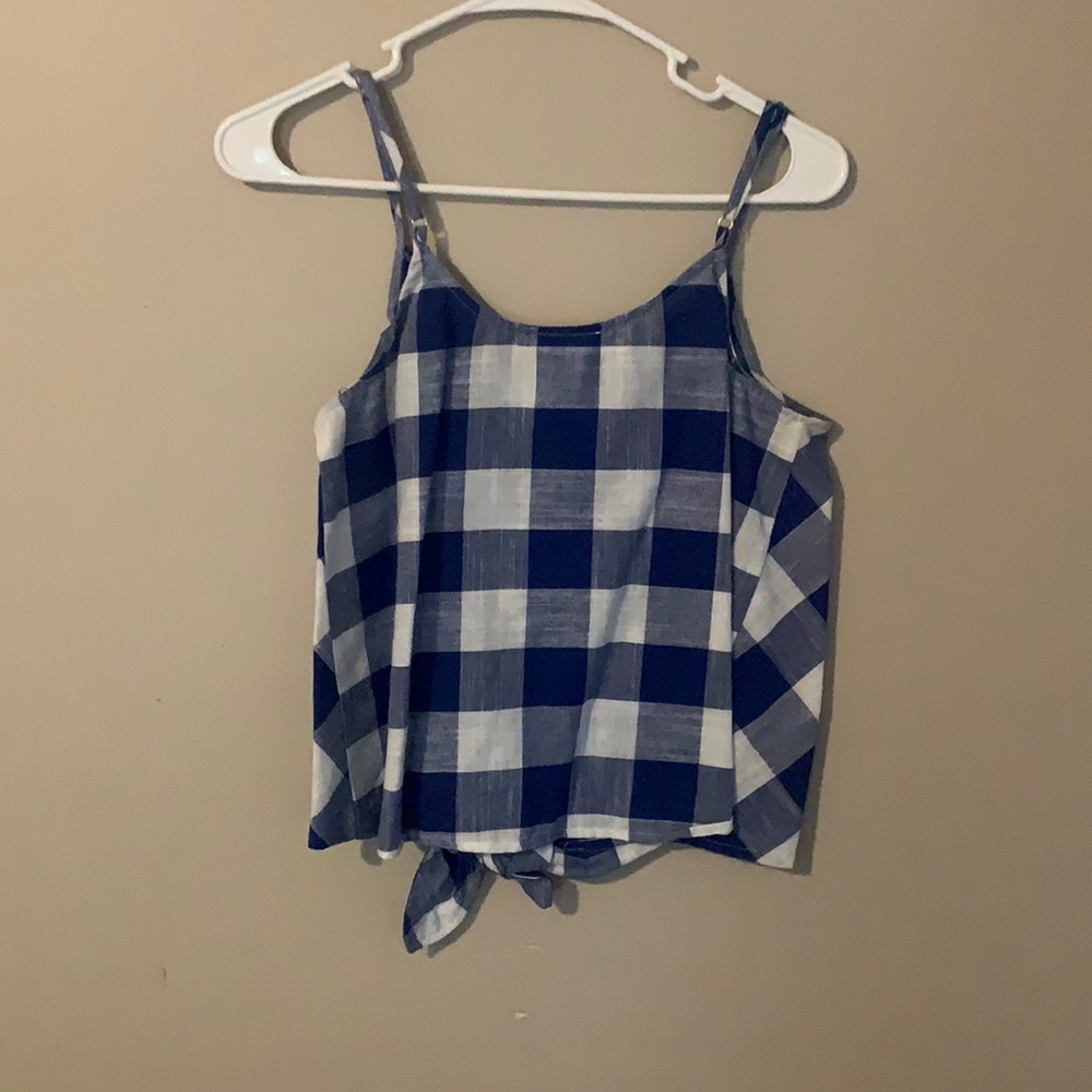cute blue top with tie in the front