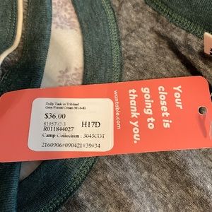 Grey tank top Thick green and thin white outlines Size medium women’s soft material Never worn; great condition Still has tags
