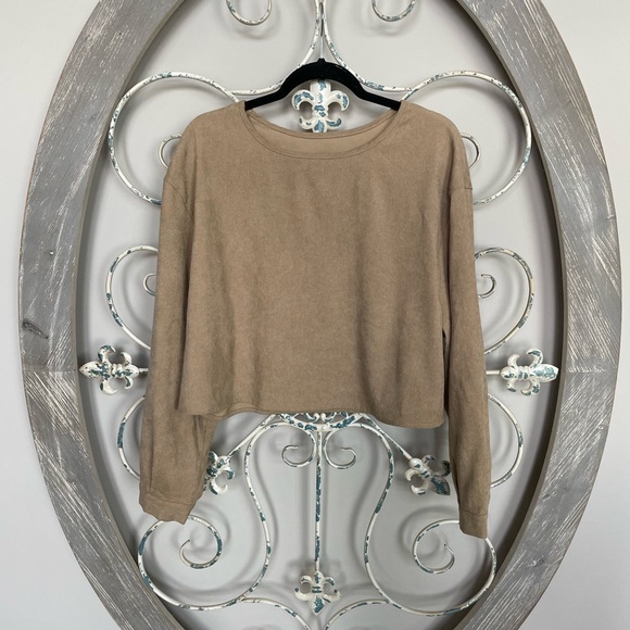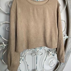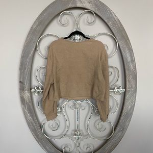 camel long sleeve ribbed top button detailing on sleeve hem