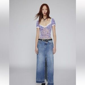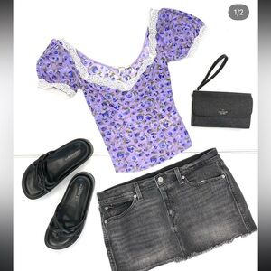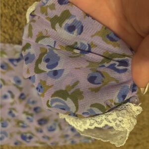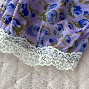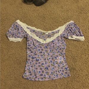 Purple/blue and white blueberry/floral top with lace trim nwot kimchi blue urban outfitters size small