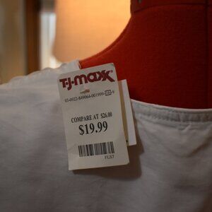 This is a new top from Velvet heart in a size XL. it is white in color and has small, ruffled sleeves and v neck that buttons down the front. The bottom scoops at the hemline. Pit to pit it is 22 inches and from the top of the bottom down it is 23 1/2 inches. It is 100% tencen and is new with tags.