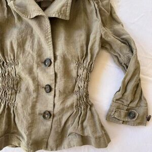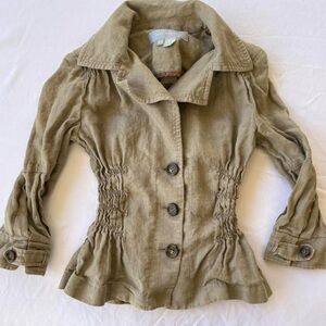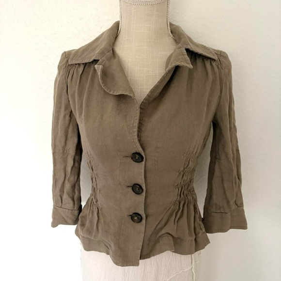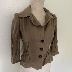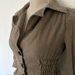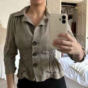 y2k 2000s form fitted long sleeve button front collared blouse. business work office casual. elastic waist.