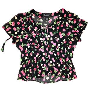 top S RAFAELLA vintage silk cropped tie neck button up cap sleeve sheer