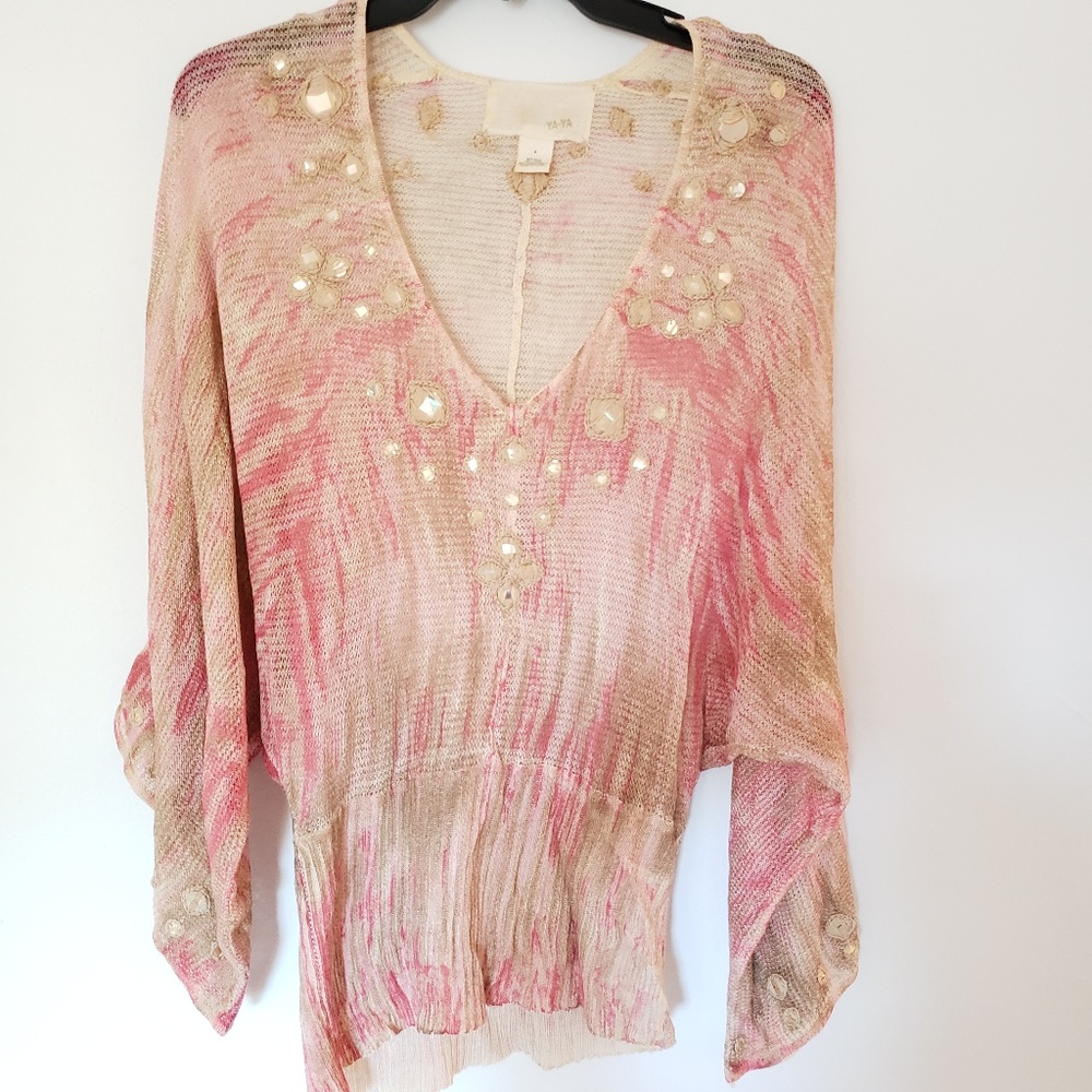 Pink and cream embroidered blouse With sequin embellishments ..