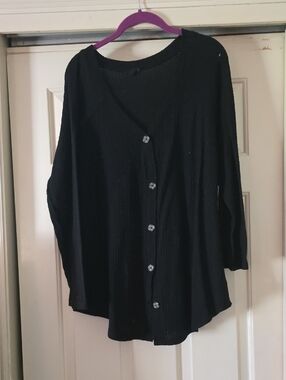Black ribbed button-front top from torrid. Lightweight knit with a relaxed silhouette. Simple style for everyday wear. Easy to layer over tees or tanks.