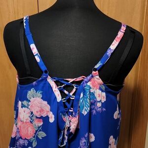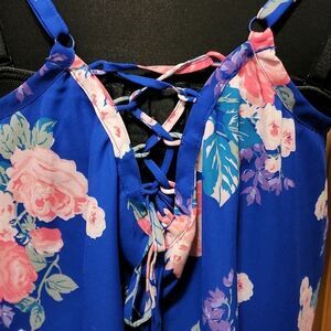 Blue floral tank top with lace up back. Adjustable straps. NWT Perfect condition!