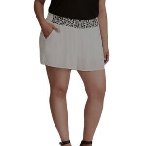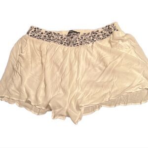 White shorts, elastic waistband with floral embroidery. Shorts have lining and light gauze overlay. Side pockets. Lightweight, very comfortable. Excellent condition!