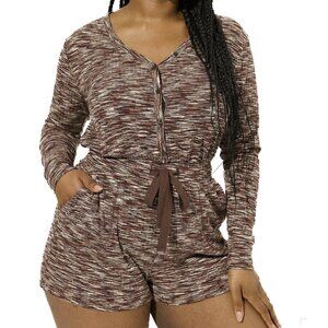 torrid Hacci Rib Knit Button Front V-Neck Lounge Romper Smoke Gray Brown 1 NWT