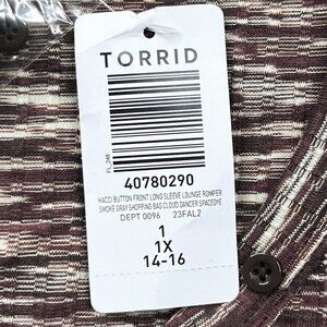 torrid Hacci Rib Knit Button Front V-Neck Lounge Romper Smoke Gray Size Brown 1 - NWT