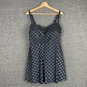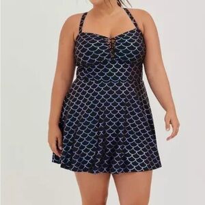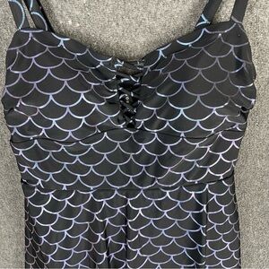 torrid Women’s 12 Wireless Lattice Front Swim Dress Mermaid Black Holographic