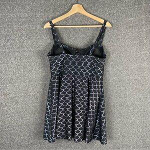 torrid Women’s Large 12 Wireless Long Lattice Front Swim Dress With Brief Black Holographic Scale Print Padded