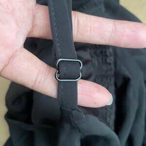 A stylish and comfortable top design features a V-neckline, adjustable spaghetti straps, and a solid black color, perfect for casual occasions in the summer and spring seasons. With a modern theme and a regular fit, this tank top from Torrid offers a flattering silhouette. Perfect for adding a trendy touch to your wardrobe with its basic yet chic style.