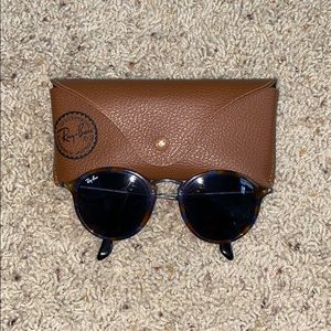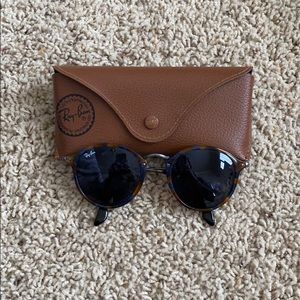 Navy blue tortoise circle ray bans! Great condition, worn a few times. Comes with case and cleaning cloth!