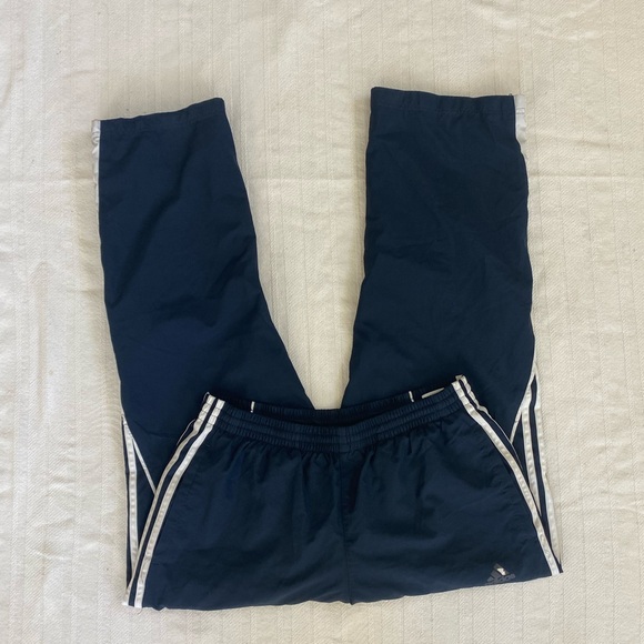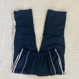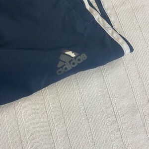navy blue and white adidas track pants/windbreakers