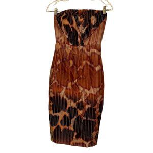 tracy reese rust brown ombre GIRAFFE print strapless cotton dress Summer…