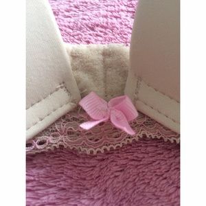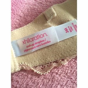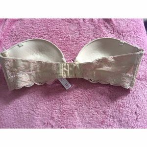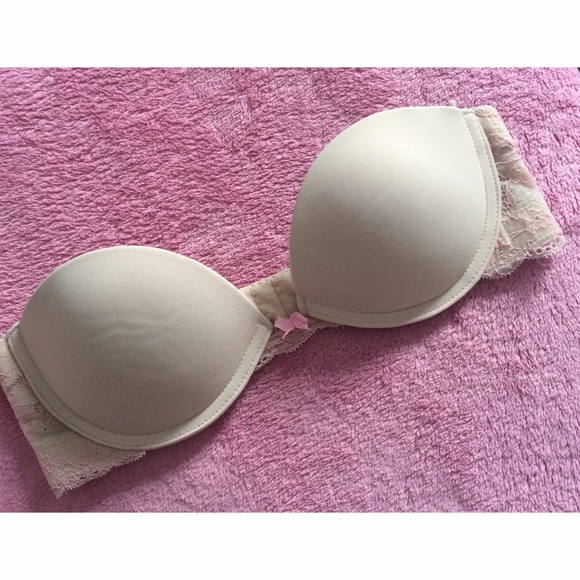 NWOT nude strapless push-up bra with pink bow & lace detailing. Clear straps included, can be a convertible bra as well. Never worn, in perfect condition.