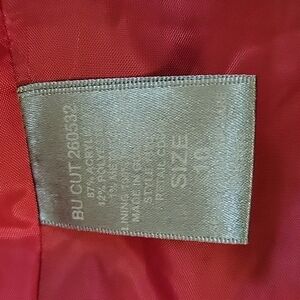 Has purple Gimp Ribbon trim and shoulder pads. Fully lined. Goldtone Metal buttons.