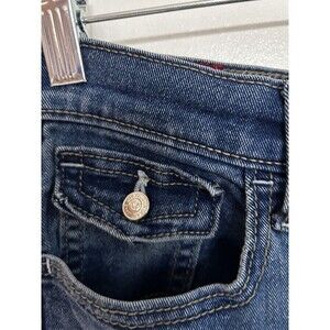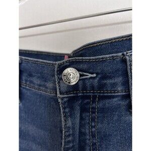 The True Religion Halle High Rise jeans in super skinny size 30 are a stylish and trendy choice for women. Made with a medium fabric wash and featuring embroidered logo pocket accents, these jeans offer a flattering fit with a high rise waist. The 5-pocket design and stretch fabric make them both fashionable and comfortable for everyday wear. The True Religion brand ensures quality and durability, while the classic blue color and super skinny style add a touch of edginess to any outfit. Pair these jeans with your favorite top for a chic and effortless look.