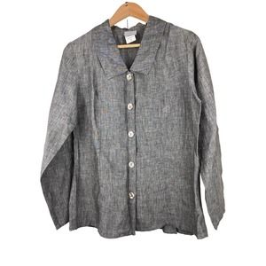 tsd Two Star Dog Size M Gray Button Up Linen Top
