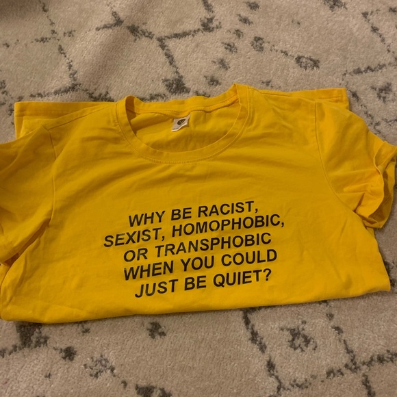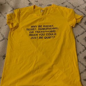 why be... t-shirt! i will say the photo comes off a lot more yellow than in person