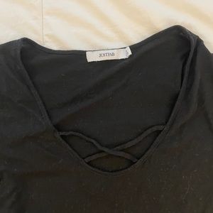 black cross neck tee