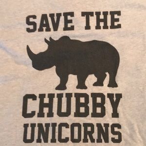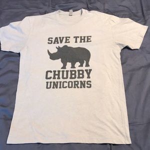 small unisex light grey “save the chubby unicorns” t-shirt. soft material. used good condition. screen printed black.