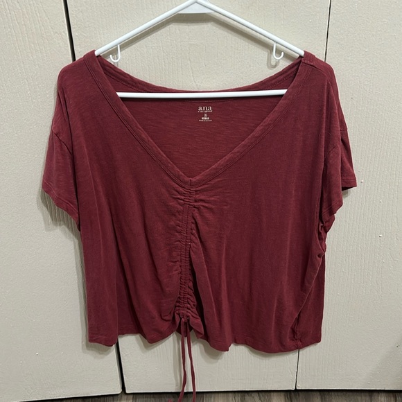 it’s from Ana and it’s new i had it on once and i just didn’t like it on me . it’s a more. burgundy color then red and it’s 1xl