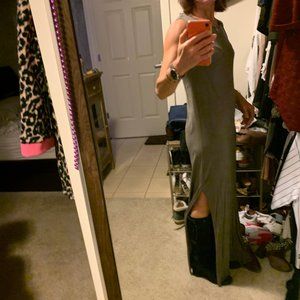 taupe-tan long tshirt dress with pocket and side slits super comfy and casual wear with tennis shoes or dressy like new!