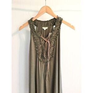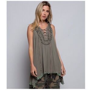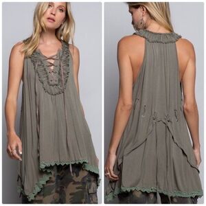 tunic Top with Ruffled Lace Up Olive Sleeveless