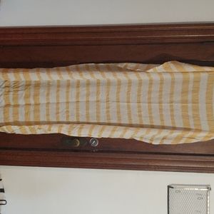 from fair sea supply co. via anthropologie, a turkish towel or beach cover up / sarong or oversized scarf. gorgeous lightweight material, multipurpose! easy to pack for a day at the beach, then throw it over your shoulders for the evening. bright buttercup yellow stripes against a warm white.