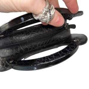 tusk black leather croc imprint mini tote bag purse 9x7"