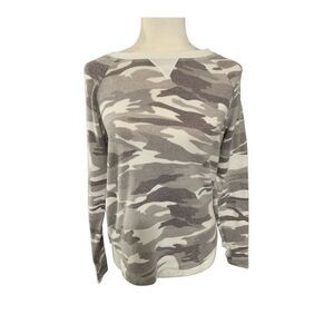 twenty5a womens gray white Crew Neck cameo long sleeve sweater top small