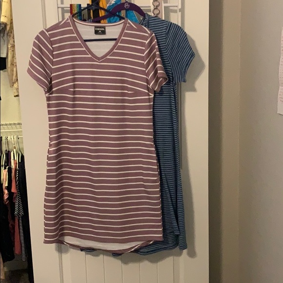 I can’t remember where I got the pink one, but the blue one is from target! They are both very light and comfy. They’re relatively the same length coming down to a little above the knee when worn. Barely worn!