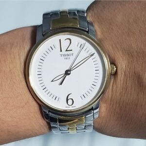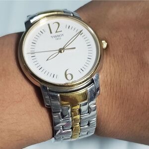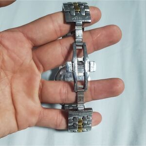 works beautifully,,very elegant and gorgeous looking watch. was for my personal use. some normal wear and scuffs. in very good condition.