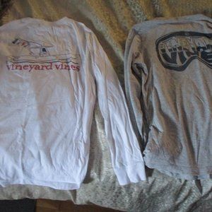 two vineyard vines boys long sleeve t shirts one white Med and one gray one smal