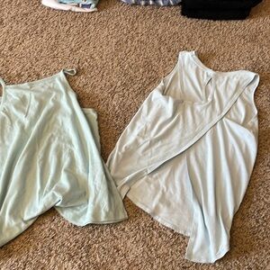 two washed blue tank tops