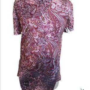 large burgundy two-piece top set. The underneath T-shirt matches the tattooing sleeve on the jacket. Great value. Wear this with a pair of dark wash denim jeans and some boots and you’re ready to go for a night out on the town.