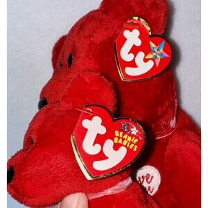 This is a set of Secret the Valentine Bear ty Beanie Baby (2003) and Beanie Buddy (2004). Both bears and tags are in pre-owned mint condition. Please see photos as they are part of the item description-photos are always of the exact item you will receive. All items are from a smoke free home.