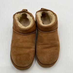 please note the sherpa has thinned and pilled at the inside heel, and there are some light wear/stains