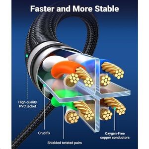 Excellent Anti-interference: UGREEN Cat 8 internet cables are designed with 4 shielded foiled twisted pairs (F/FTP) and an aluminum foil shielding layer. This design can greatly reduce interference and crosstalk from adjacent pairs and other cables, making network speed faster and more stable.