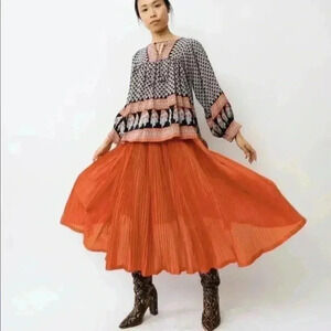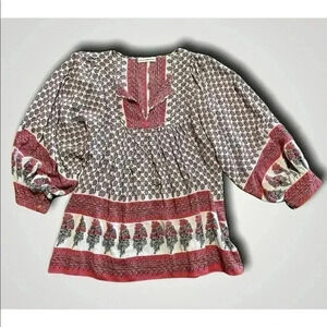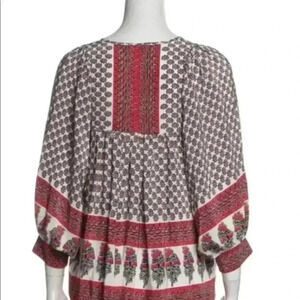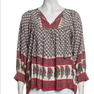 ulla johnson Silk Indian Color Block Floral Long Sleeve Bohemian Blouse Sz 4.