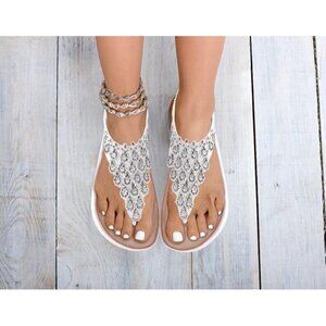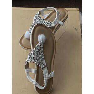 ulogu Women's White Rhinestone Thong Sandals – Size 10 Boho Flat Flip-Flops