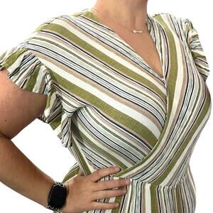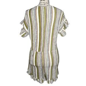 umgee MEDIUM Faux Wrap Ruffle Sleeve Hem Elastic Waist Striped V Neck Romper