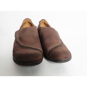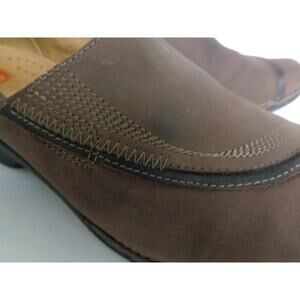 unSTRUCTURED by Clarks Womens US 8M Burgundy Nubuck Leather Slip On Wedge Shoe