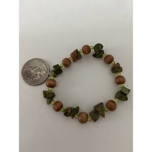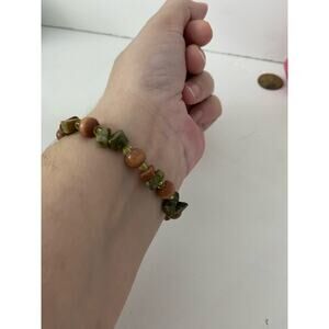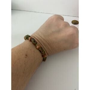 Cutie hippie retro 90s style unakite jasper mixed bead bracelet likely vintage in good condition age related wear is pictured great for holidays going out parties gifting work vacation school art deco boho retro twee casual preppy glam grunge coastal grandmother cottage rave