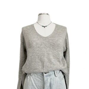 uniqlo | cozy heather gray wool blend vneck long sleeve pullover sweater | sz l