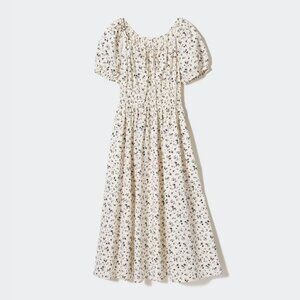 uniqlo patterned volume sleeve dress in off-white/cream with petticoat included size medium (m) worn once, very cute, light, and comfy!! smock stitching at waist for comfy fit gathered neckline with ribbon has 2 pockets!!! 100% cotton poplin fabric (Body: 100% Cotton/ Pocket Lining: Outer Layer: 100% Polyester/ Pocket Lining: Inner Layer: 100% Cotton/ Petticoat: 100% Polyester)
