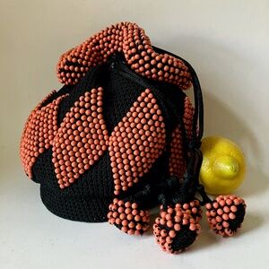 antique beaded drawstring handbag